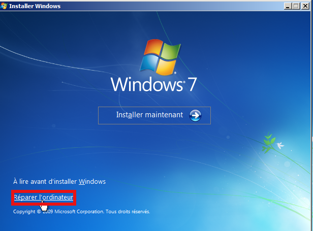 4) L'image ci-dessous apparaît, cliquer sur "Réparer l'ordinateur", en bas à gauche de l'