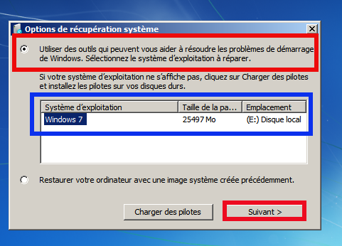 Option de récupération système".