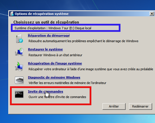 Toujours dans l'invite de commandes, via le DVD de Windows, tape: